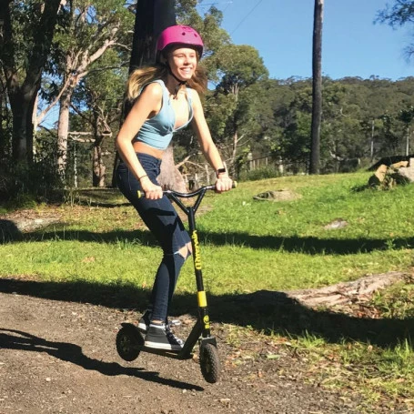 All purpose scooter for smooth transport in the city and the freedom to get down and dirty in the vush. Sealed bearings headset prevents contamination from dirt and grit, strong but light steel forks and wedled gooseneck for extra strength