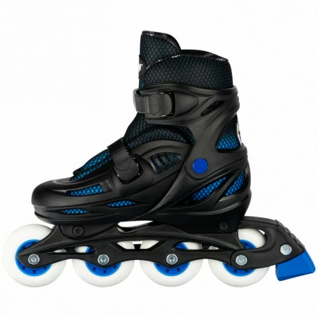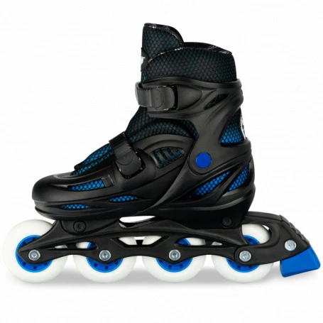 The Model 148 is an adjustable inline skate that is targeted for beginner skaters and features a build quality and style that was designed to provide an optimum skating experience. All of these elements result in a skate that is easy to learn on and affordable, while still providing the quality roll and feel of a much more expensive product. Size Adjustable The first and most important feature of these skates is their ability to size adjust across a range of four shoe sizes. There is a button on the side of the boot that, when pressed, allows you to slide the toe section to increase or decrease the size. This means that the skates will be able to grow along with your child, allowing them to enjoy the skates for a longer period and saving you money as well! High Quality Design The model 148 was also built to provide a fantastic βrollβ for your child, ensuring that they have a great skate experience. This is made possible by the skatesβ high quality ABEC 5 bearings and solid urethane wheels, which are great for both indoor and outdoor use. The wheels will spin smoothly and evenly, unlike the cheap plastic wheels found in beginner skates sold by our competitors. Comfort Fit Comfort and support are very important for a new skater. The 148 is built with a solid frame boot, which makes it strong and durable, that provides the correct support and cuff stiffness for young skaters. The all-nylon boot also includes a breathable mesh liner and ventilated shell, both of which will keep your child comfortable and happy during extended skating sessions.
