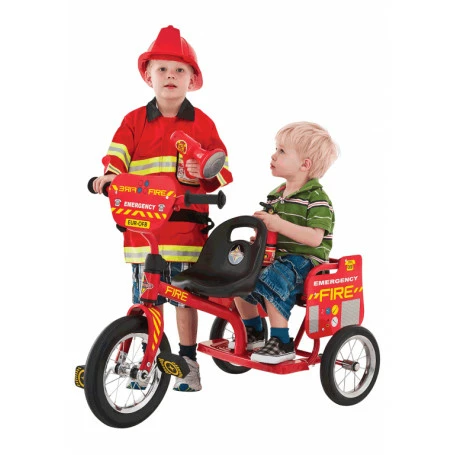 Perfect for 2 children to interact and play together or just as much fun for one junior crime fighter too. Features: β’ Great themed police car graphics β’ Super strong all steel frame and fork construction β’ Strong steel wheels β’ Big, tough, quiet EVA rubber tyres β’ Oversized steel pedal cranks β’ High back bucket seat with cool police themed safety flag β’ Fully enclosed rear passenger seat now with teddy bear/doll seat-belt β’ Large rear footplate β’ Comfortable safety grips β’ Length 930mm, width 480mm, H/bar height 635mm, seat-height rider 360mm, passenger 315mm, weight 7.2kg max rider weight β 40kg combined rider and passenger. Suitable from 3 yrs+