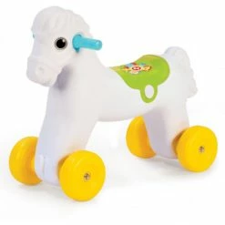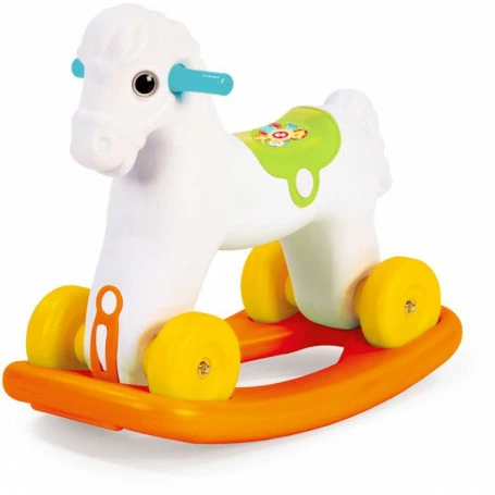 Brightly coloured Fisher Price Rocking Horse. 2 in 1 rocking horse that also has wheels and can be used as a ride on. Made from quality plastic.