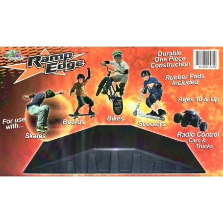 This ramp for bikes, skateboards, scooters, and remote controlled cars is a durable piece of construction that measures 110cm (L) x 39.5cm (W) x 15cm (H) in its highest point. It is suitable for use by children aged 10 years and above.