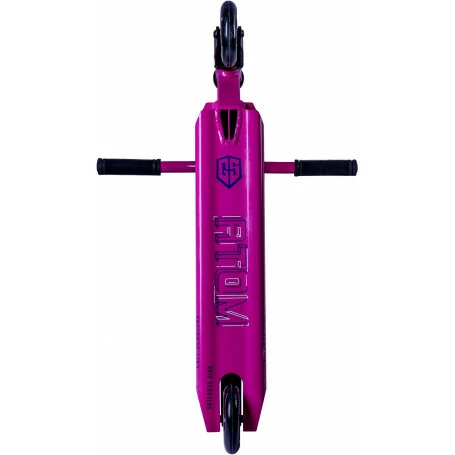 Grit ATOM Scooter – Pink Grit Pro Scooters is at the forefront of the scooter riding scene in Australia and quickly became one of the fastest growing Pro Scooter brands in the world. Grit Pro Scooters incorporate the latest in computer-aided design techniques and constant feedback from its team riders around the world to produce some of the most advanced complete Pro Scooters and custom pro scooter parts on the market. The Grit Atom Pro Scooter comes with a 2 piece adjustable handlebar that grows with the rider. With its high end parts, the Grit Atom Scooter is light weight yet extremely strong and is designed to handle the needs of a first time pro scooter rider. The Nycore wheels are stronger than ever! The Atom is the perfect entry-level ride, providing excellent value for money. Deck dimensions W: 101.6 mm (4”) L: 482.6 mm (19”) BARS: 2 Height Hi Tensile Riser Handlebar, 510mm (20”) wide x 500mm (19.6”) or 550mm (21.6”) Bars for Smaller Riders to grow FORKS: Hi Tensile Threaded Fork WHEELS: 100mm 85A PU Nycore Wheels with ABEC 7 Bearings CLAMP: Alloy Double Clamp 31.8mm HEAD PARTS: Threaded Head Part BRAKE: Grit Flex brake GRIPS: Soft Feel Grips Height from ground to top of handlebars: 755mm/805mm Total Weight: 3.4KG/7.49lb