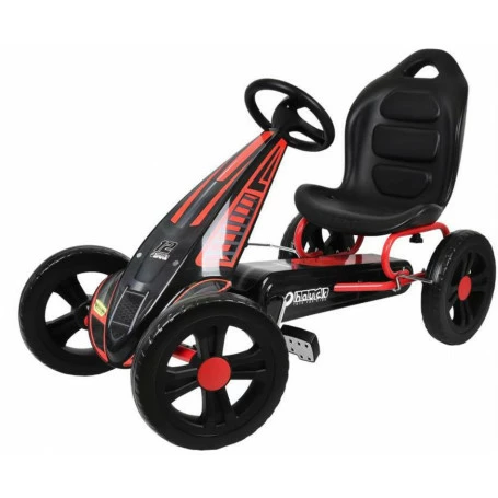The Go-Kart Cyclone from Hauck is easy to handle and suitable for children ages 4 and up. The large front cover in a race design underscores the sporty character. Large 12″ wheels and the high seat position make for instant driving enjoyment. So that the tempo is always under control, the easy-to-use hand brake works on both rear wheels and therefore offers ideal safety. The bucket seat is adjustable and has a comfortable backrest. Features: • Rugged tubular steel frame • Large front cover in a race design • 12″ EVA foam plastic wheels Ø 29.1cm • Hand brake for both rear wheels • Adjustable bucket seat • Length of seat centre to the pedal (forward-most setting) • Front position: 48 cm, rear position: 56 cm • Weight: 10.28 kg (22.7 lb) • Dimensions (L/W/H): 3 x 52 x 72.2 cm • Maximum capacity: 55 kg (121 lb) • For ages 4-10.
