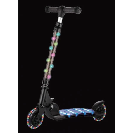 The Kan-i Light-Up Scooter features 6 light patterns, a rear foot brake, easy folding mechanism, 120mm PU wheels, and a weight limit of 30kg.
