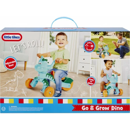 Kids will love the dinosaur-themed Go & Grow Dino ride-on from Little Tikes. The cute, friendly design fills kids with joy, and the foot-to-floor format makes it easy for them to scoot and ride. The Go & Grow Dino trike grows as kids do with the adjustable seat, and promotes large motor skills, active play and balance. Kids can fill their day with active play with the all-new Go & Grow™ Dino by Little Tikes®! • GROWS AS KIDS DO. This friendly dinosaur ride-on has an adjustable seat so that it can grow as kids do • SAFE & STURDY. Features an oversized back wheel for added stability, a wide front wheel base, and a built-in wheel guard for safety • WORKS INDOORS OR OUTDOORS. This ride-on is designed for indoor and outdoor use • EASY TO MANEUVER. The tight steering radius makes the Go & Grow Dino easy for kids to control • DEVELOPS KIDS’ MOTOR SKILLS. Kids can build their coordination, balance and large motor skills while they ride • Maximum weight limit: up to 50 lbs. • Assembly Required • Ages: 1+ Years