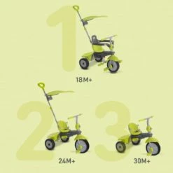 The Smartrike Carnival 3in1 Green Tricycle is a trike that can adapt to each stage of your kidsβ life with 3 different modes. Suitable for kids 18 months and older, this trike has simple and easy to use 1 touch steering, as well as 2 stage pedals so that kids can learn how to ride in control. It has a foldable footrest for those who don’t want to pedal, as well as a 3-point safety harness and safety bar for added security. It even comes with a toy basket so that you can carry all of your kidsβ essentials as you go. The Carnival 3in1 Tricycle is a simple and fun way for kids to learn some riding skills. Features: Extendable canopy: The adjustable and removable sun canopy protects your baby from the sun. 2-stage training pedals: Allow your toddler to practice pedalling while you remain in control of the trike. When they are ready, engage the 2nd stage and watch them pedal independently. Frontwheel shock absorber: No bumps on the road for your little adventurer. SmarTrike tricycles come equipped with frontwheel shock absorbers to ensure a smooth ride for all ages. Foldable footrest: Unfolds to give your growing toddler a safe and comfortable place to rest their feet on until they can reach the trike pedals. No dangling legs, no dragging feet on the ground, Safety features: The 3-point harness and safety bar ensure your baby stays securely seated while you are on-the-move.
