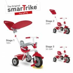 smarTrikeβs 3 in 1 Zip Go Red tricycle is designed for quality and functionality for babies from 18 months up to 36 months. It converts easily from a safe and comfortable baby tricycle to an independent tricycle. With the lightest touch, it maneuvers easily wherever you want to go. The unique navigator button on the mudguard lets you switch from parent Touch Steering to child ride-control.